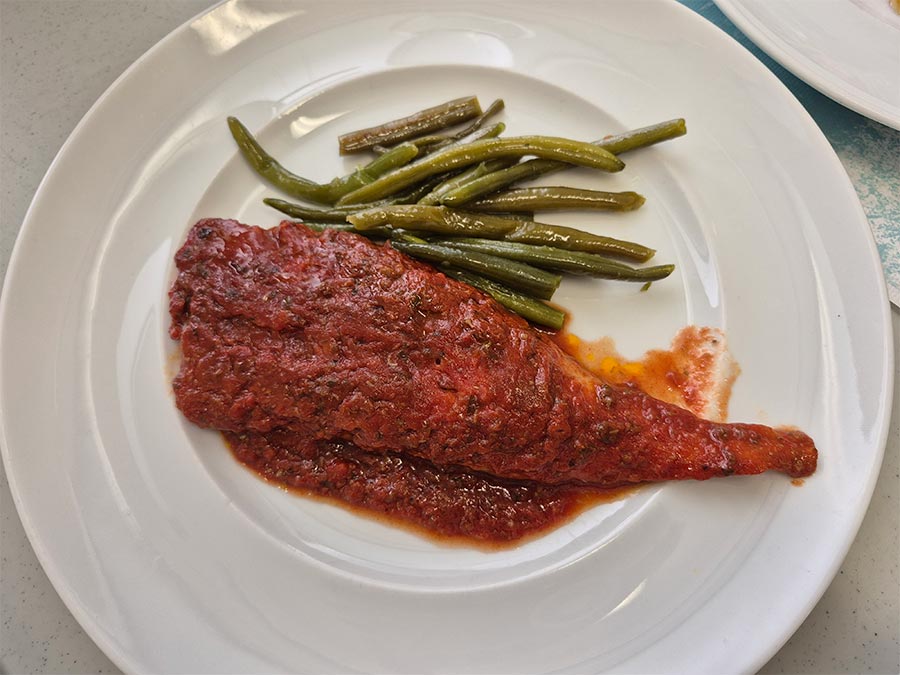 Fresh bread, both brown and whole wheat, and fruit (fresh, dried, and in syrup) accompany every choice, without rushing.
