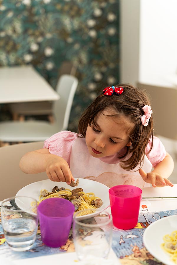 For the little ones, we prepare fresh baby food, vegetable broths, and soups, and at the table, you'll find a baby kit with bibs, cutlery, and child-sized glasses. Plus, with flexible hours, high chairs, a microwave available 24/7, and bottle warmers available to take to your room—each family follows its own rhythm, naturally.