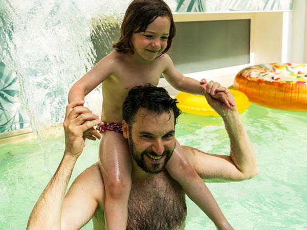 The location makes everything even more enjoyable: direct access to the bar for a cool drink and the wellness center for a regenerating break.