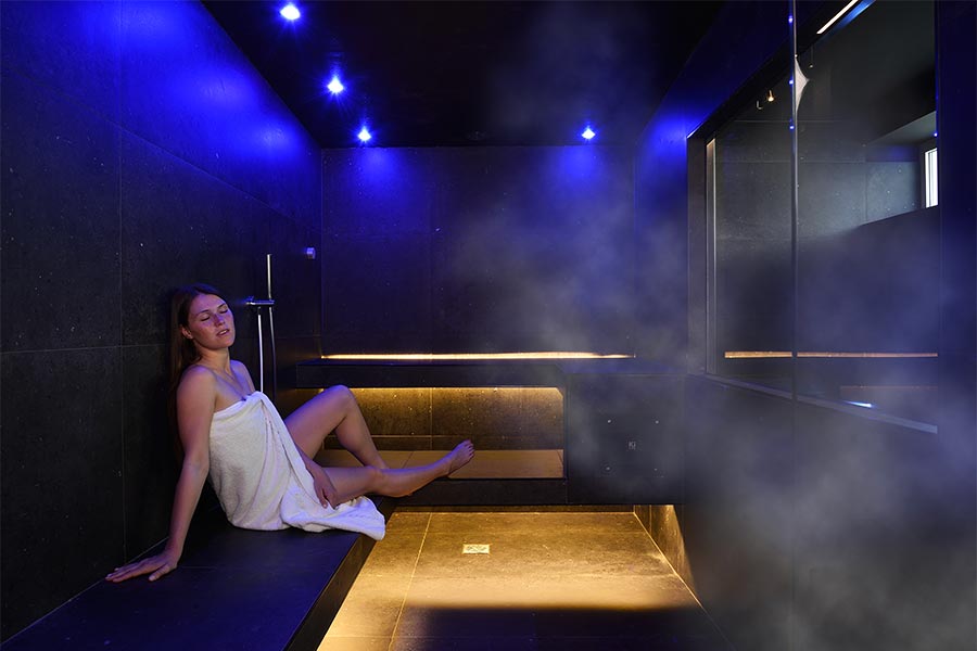 The whirlpool tub invites you to unwind, the Kneipp path revitalizes your energy, the Turkish bath envelops you, and for a truly immersive experience, the rejuvenating Finnish shower, the sensory showers with chromotherapy, and the salt room with a pleasant herbal tea corner.